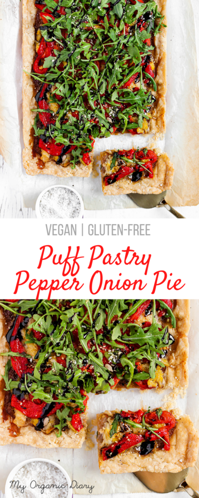 Gluten-Free Puff Pastry Pepper Onion Pie – Mouth-watering savory tart, a great alternative to regular puff pastry pie.